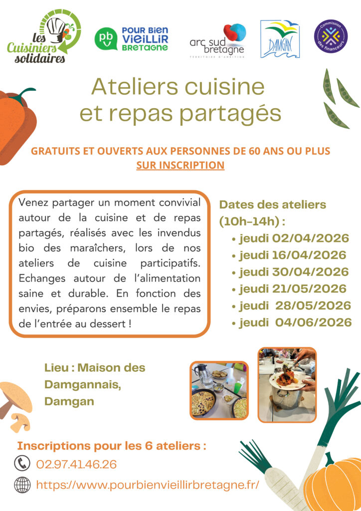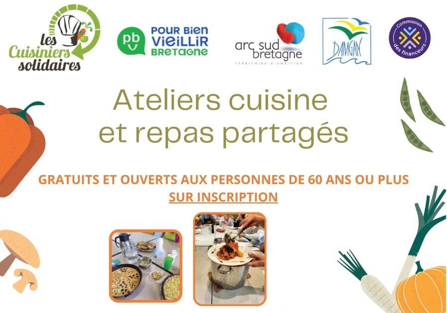 Pour lutter contre le gaspillage alimentaire et l’isolement en zone rurale, Arc Sud Bretagne et l’association “les Cuisiniers Solidaires” vous invitent à des ateliers cuisine qui seront suivis d’un repas partagé !